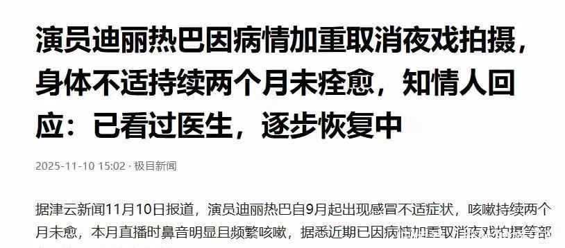 真正让病情恶化的,是今年10月新剧开机后连续七天的夜戏拍摄。知情人透露,迪丽热巴单日工作时长超过14小时,之前只是吃感冒药硬扛,直到上周拍摄时咳到无法说台词才被迫停拍检查。